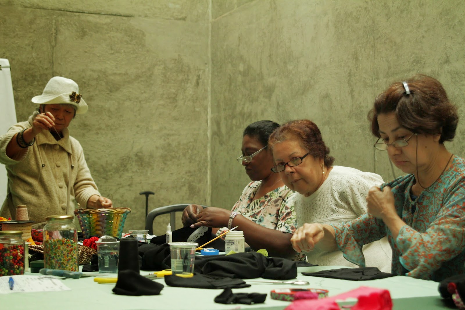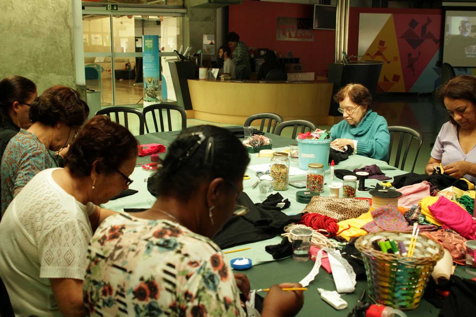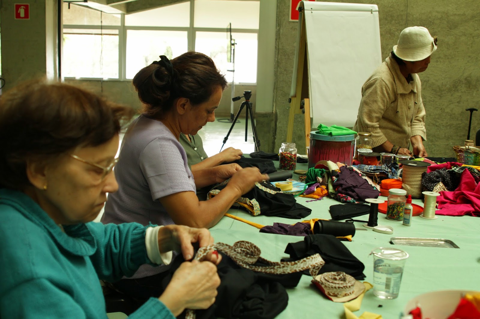 | Alunas fazendo flores de fuxico |