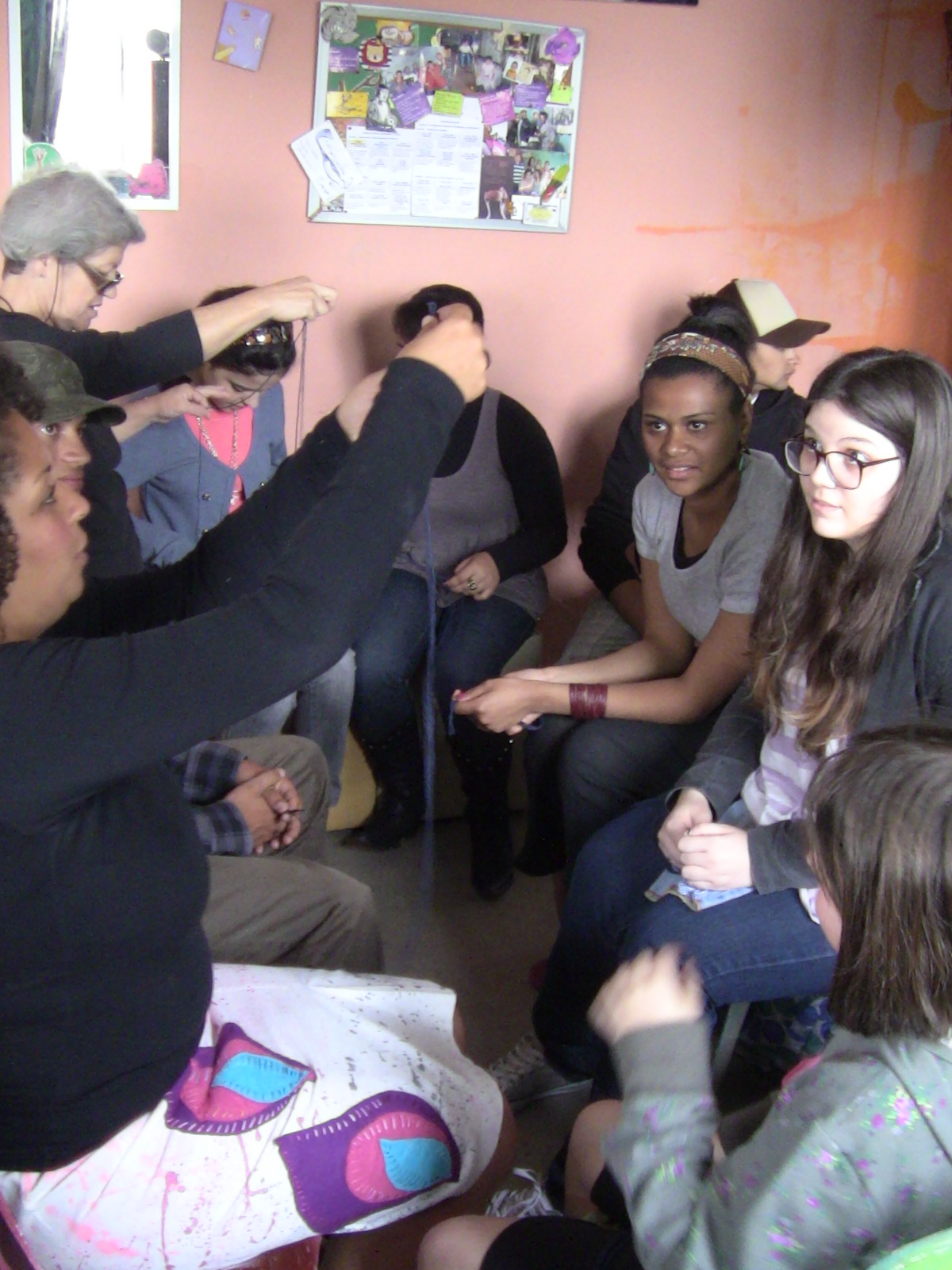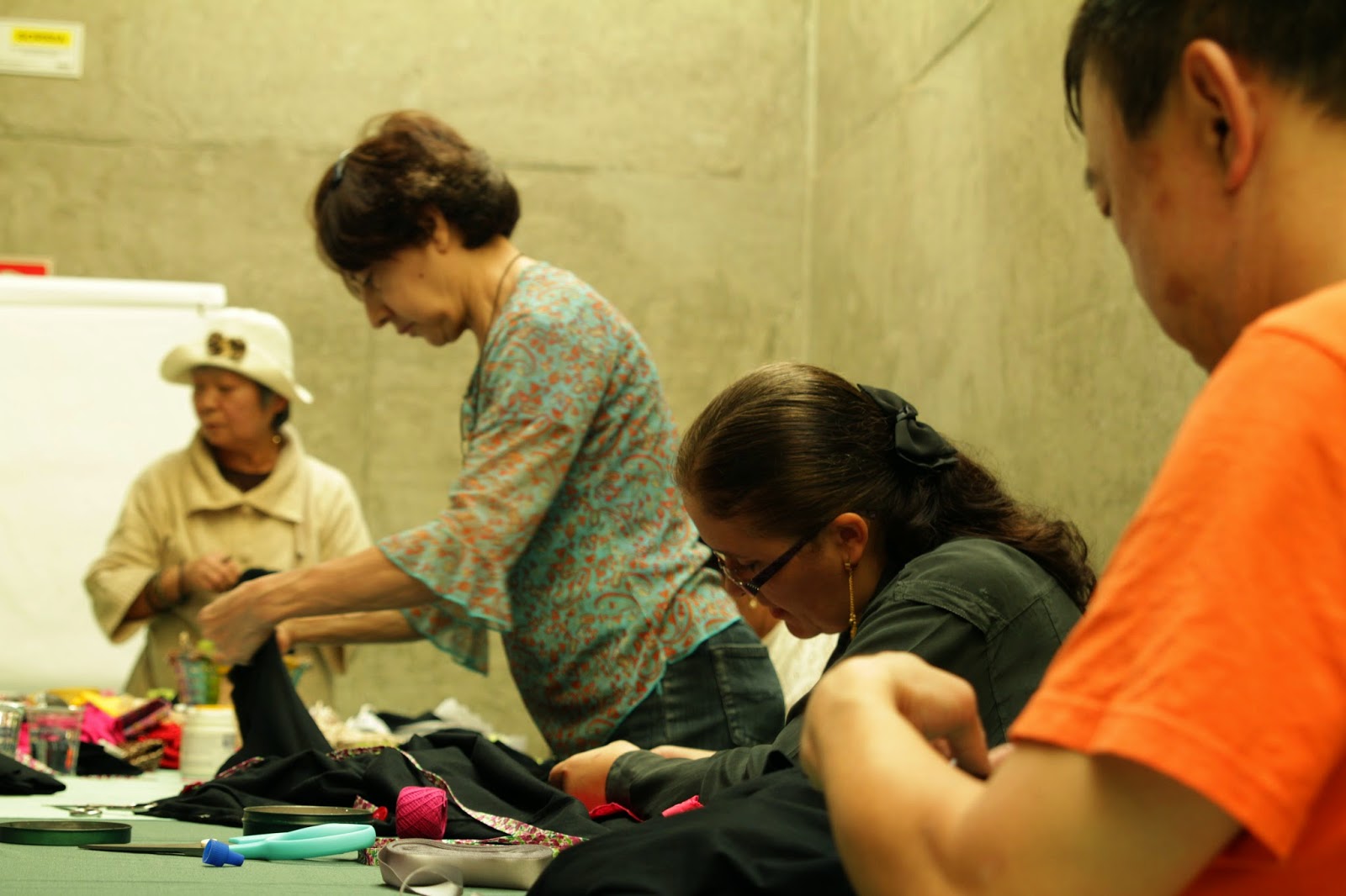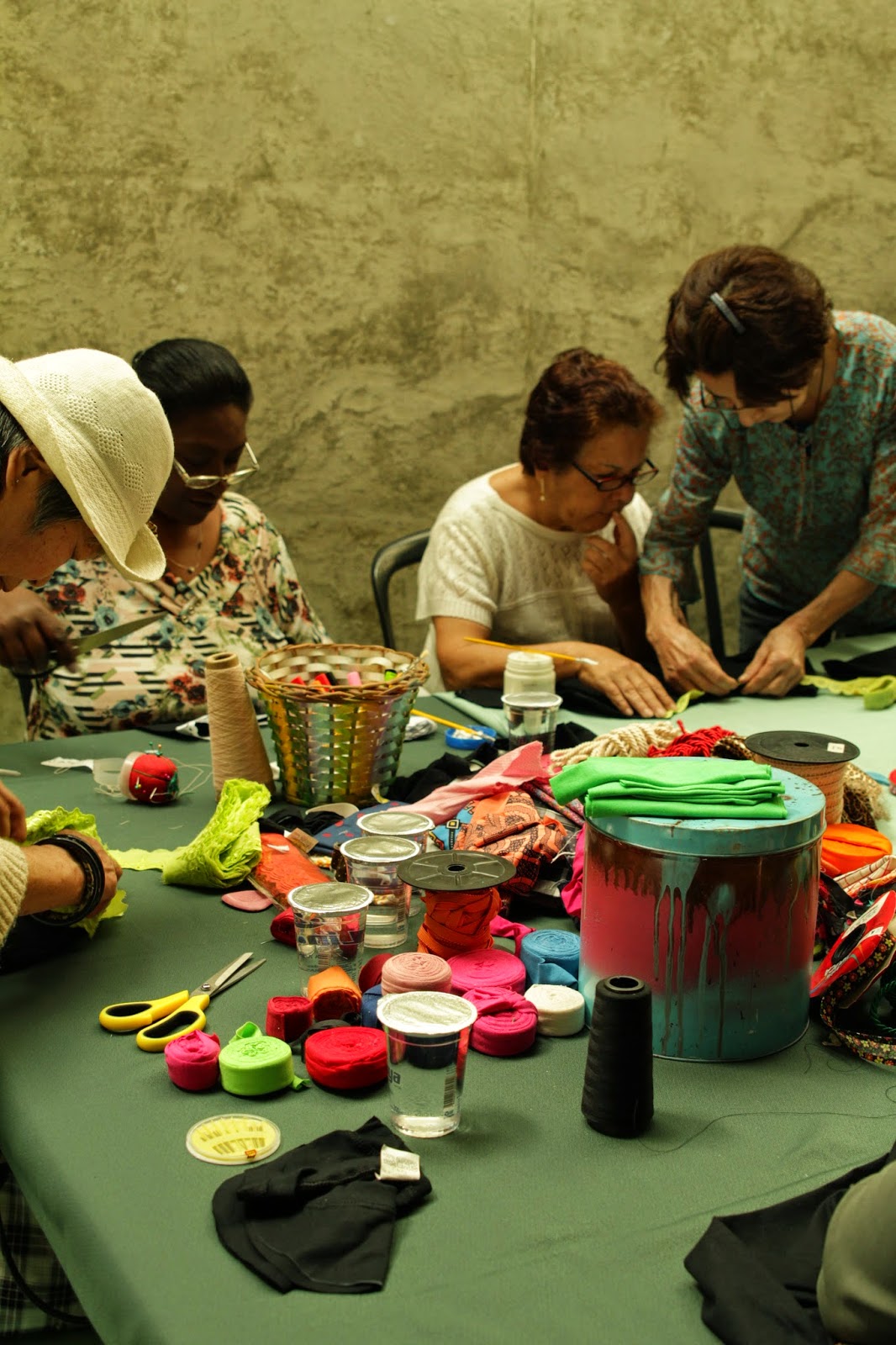 | Alunas fazendo flores de fuxico |